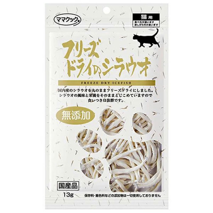 国内産の生食できるシラウオを原料にしフリーズドライ にしているから、生の風味と栄養が猫ちゃんの食欲をそそります。