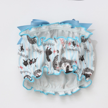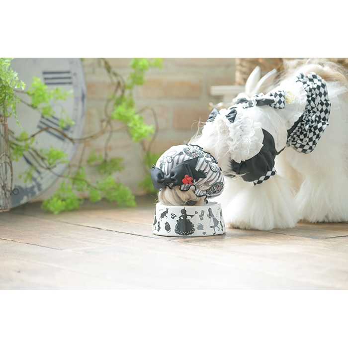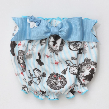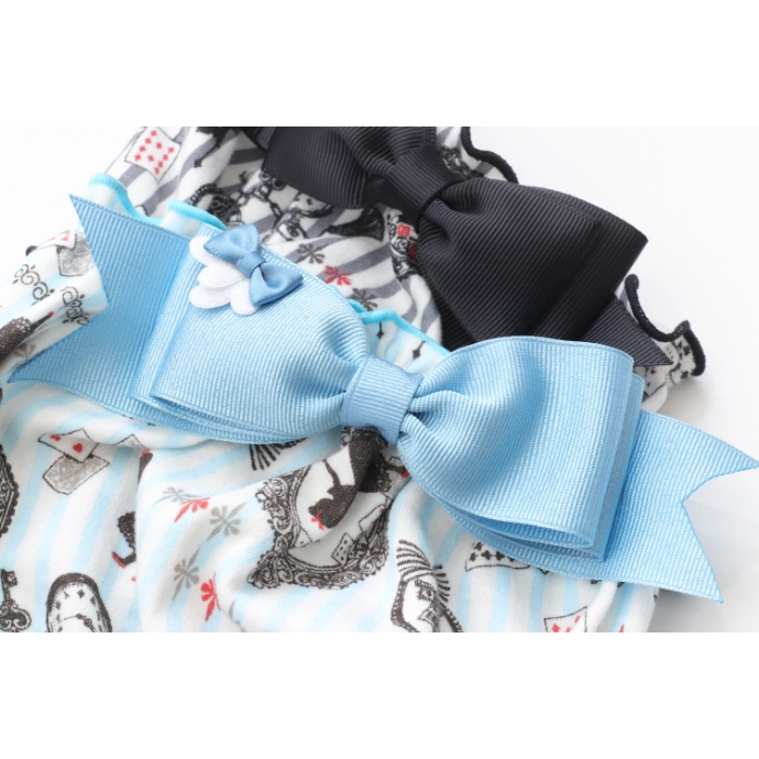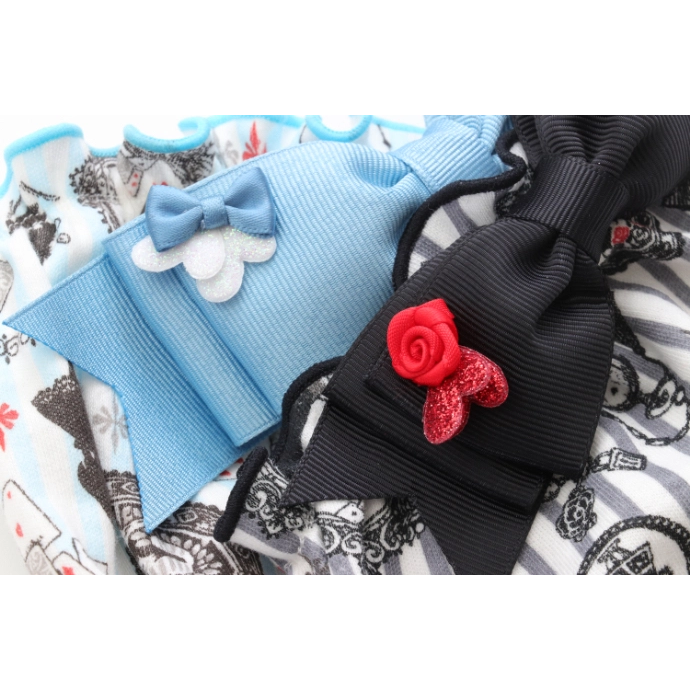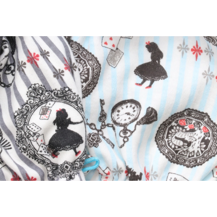アリスモチーフをちりばめた、ストライプ柄がかわいいスヌードです。