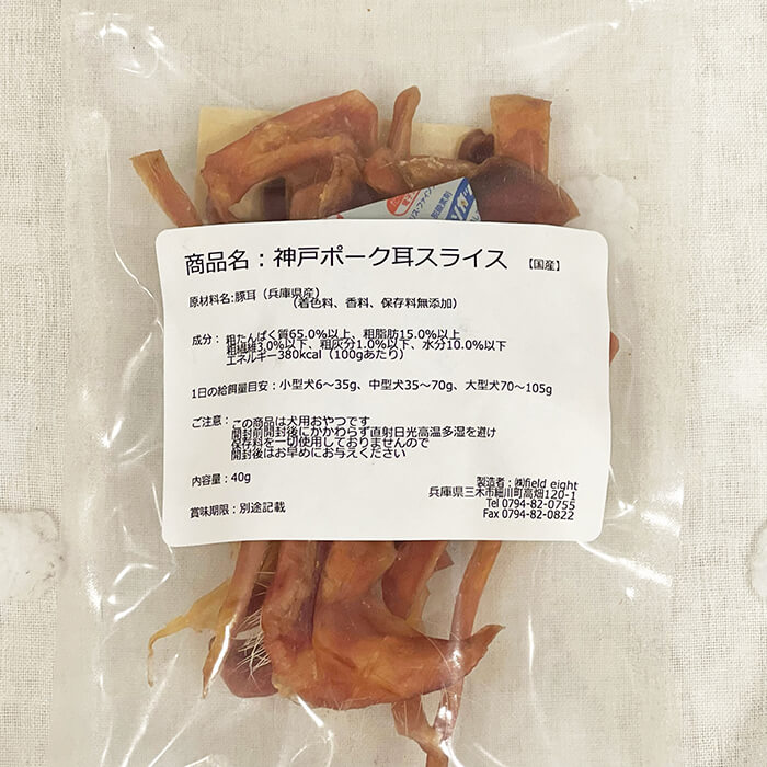 ノンコロキッチン オリジナル おやつ 神戸ポーク豚耳スライス 40g 犬 無添加 無着色 兵庫県産 国産 【NONKORO KITCHEN】