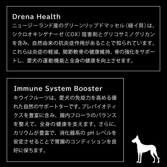 これらすべてが健康な肌、光沢のあるコート、丈夫な関節をサポートします。