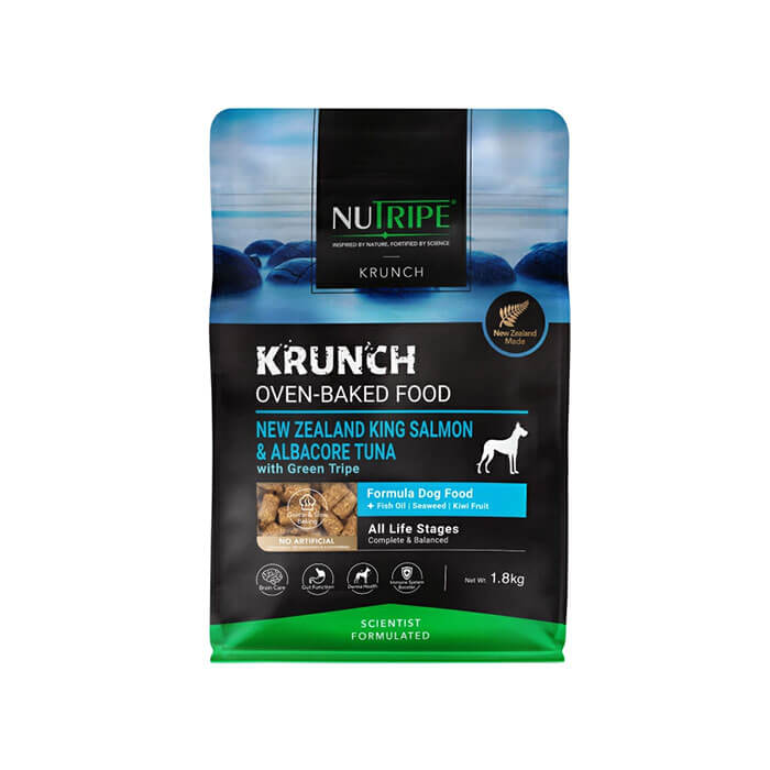 この肉はタンパク質の含有量が非常に高いことが特徴です。「キングサーモン&ツナ with グリーン トライプ」は、
