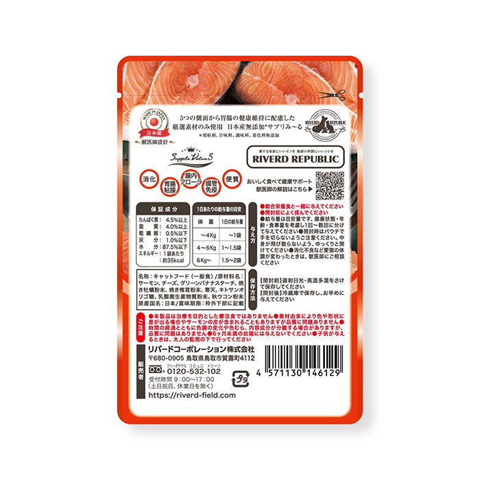 ねこみ~る 無添加サプリseries SuppleValue5 胃腸健康維持 サーモン (パウチ40g×14袋) 日本産 【リバードペット】