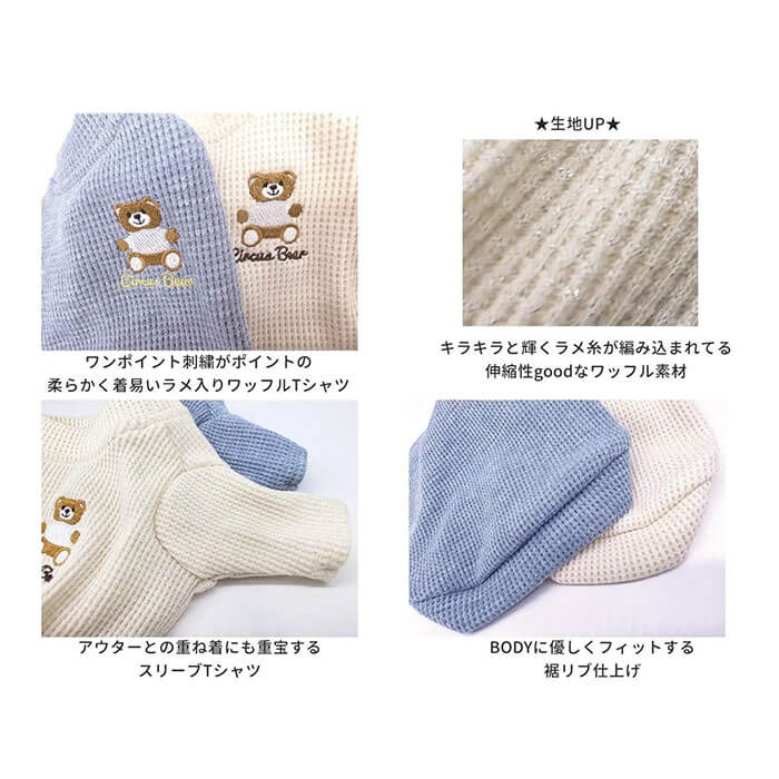 ワッフルのカジュアルさの中にシルバーラメが珍しいサーカスらしいお素材を使用。P⚫︎LOみたいなこっくり刺繍のトイベアがポイントに◎