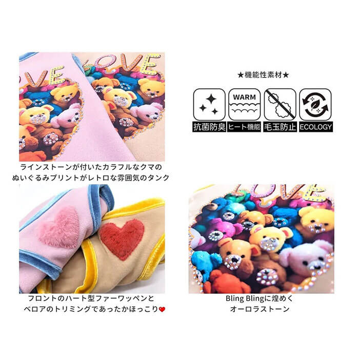 カラフルベアが沢山のプリントの上にオーロラストーンが全部のクマちゃんに散りばめられた本当にキラッキラのタンクです。