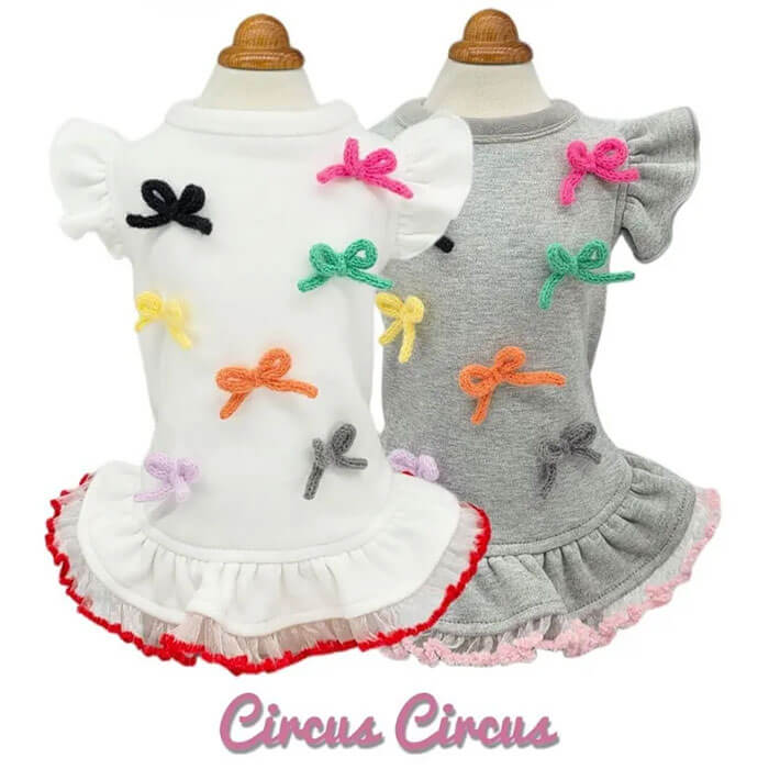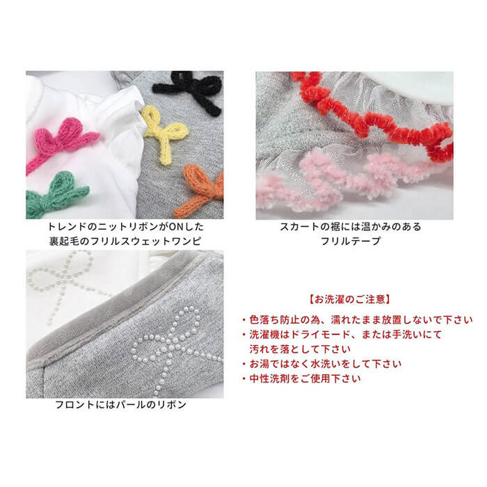 カラフルなニットリボンいっぱいの裏起毛ワンピース。