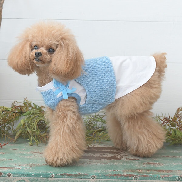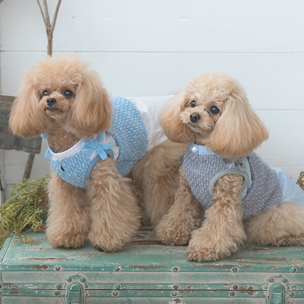ブルー → 画像1枚目:左トイプードル着用(ブルーシャツ)