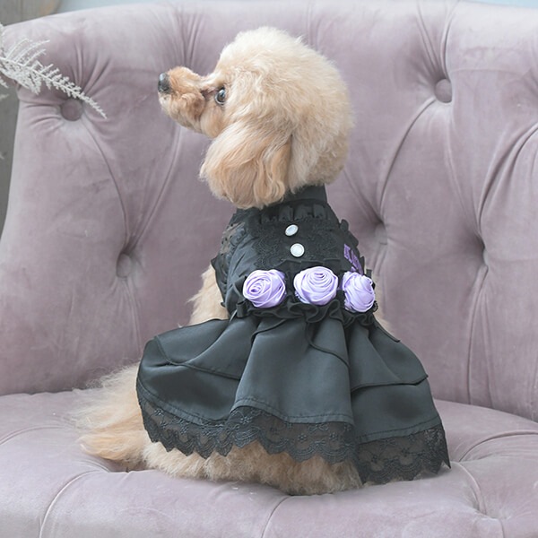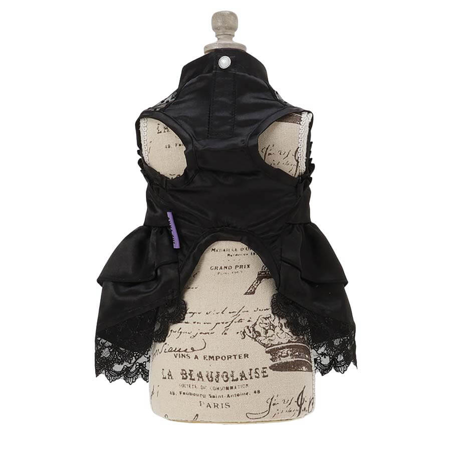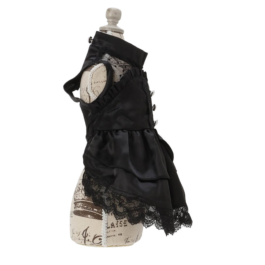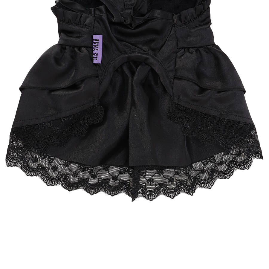 ブラックを基調としたサテンドレスは、ハロウィーンシーズンはもちろん、特別な日のおしゃれにもぴったり!