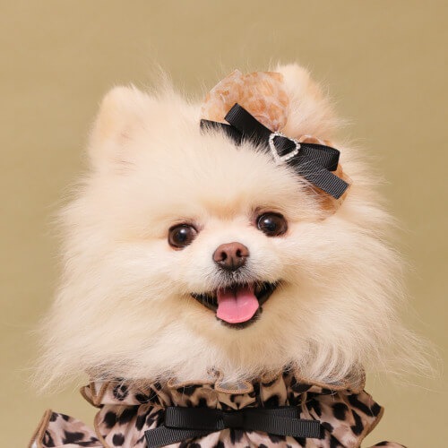 レオパードハーネスとコーディネートすれば可愛さ倍増!もちろんオーナー様のヘアーアクセとしてもお使いいただけます。