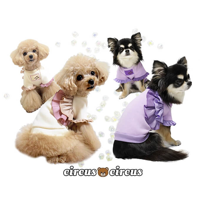 ■サイズ:XXS/XS/SS/S/M/L【 実寸SIZE 】 XXS・・・首回り21cm、胴回り28cm、着丈18.5cm、袖丈(脇下フリル込み)2.5cm