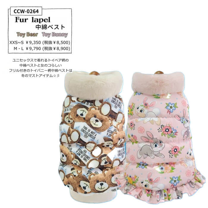 女の子らしいフリル付きのトイバニー柄中綿ベストは冬のマストアイテム☆